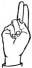 На ћирилици написано БОГИЊА БЗЕНИЧАНИН састоји се из 16 слова [?]. Исписано ћириличном једноручном азбуком за глувонеме: